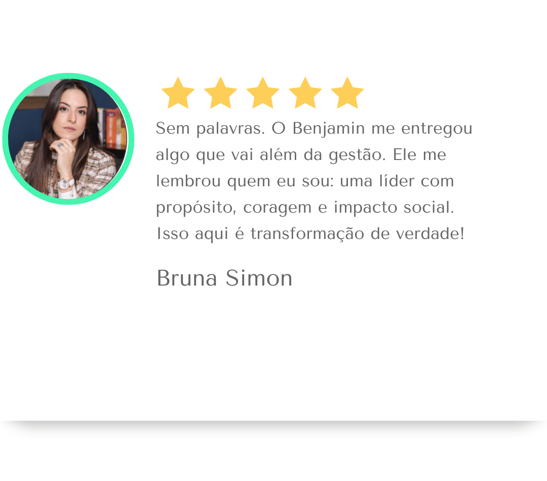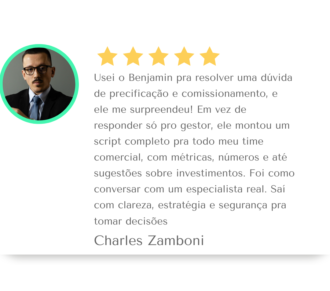 Nada de vídeos longos. O Benjamin entrega comandos objetivos, diretos e práticos. Você aplica, vê o resultado e segue o fluxo com autonomia.